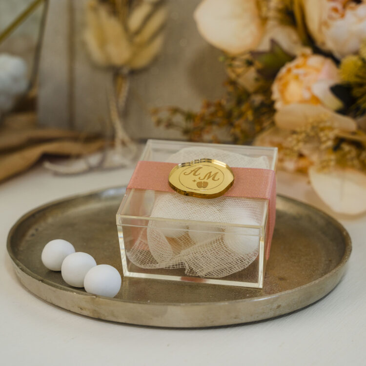 Πρωτότυπη μπομπονιέρα γάμου με αρωματικό κερί. Μπορείτε να επιλέξετε μόνο το ποτήρι flower ή να επιλέξετε την ολοκληρωμένη μπομπονιέρα. Η ολοκληρωμένη μπομπονιέρα περιλαμβάνει 5 κουφέτα λευκά crispy Χατζηγιαννάκη δεμένα πάνω στο κουτάκι. Αν επιθυμείτε κάποιο διαφορετικό χρώμα στο λουλούδι μπορείτε να το αναγράψετε στα σχόλια όπως και τα ονόματα που θα αναγράφονται πάνω στο ποτήρι (υπάρχει δυνατότητα να γίνει αλλαγή στο σχέδιο του αυτοκολλήτου).