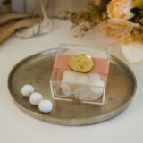 Πρωτότυπη μπομπονιέρα γάμου με αρωματικό κερί. Μπορείτε να επιλέξετε μόνο το ποτήρι flower ή να επιλέξετε την ολοκληρωμένη μπομπονιέρα. Η ολοκληρωμένη μπομπονιέρα περιλαμβάνει 5 κουφέτα λευκά crispy Χατζηγιαννάκη δεμένα πάνω στο κουτάκι. Αν επιθυμείτε κάποιο διαφορετικό χρώμα στο λουλούδι μπορείτε να το αναγράψετε στα σχόλια όπως και τα ονόματα που θα αναγράφονται πάνω στο ποτήρι (υπάρχει δυνατότητα να γίνει αλλαγή στο σχέδιο του αυτοκολλήτου).