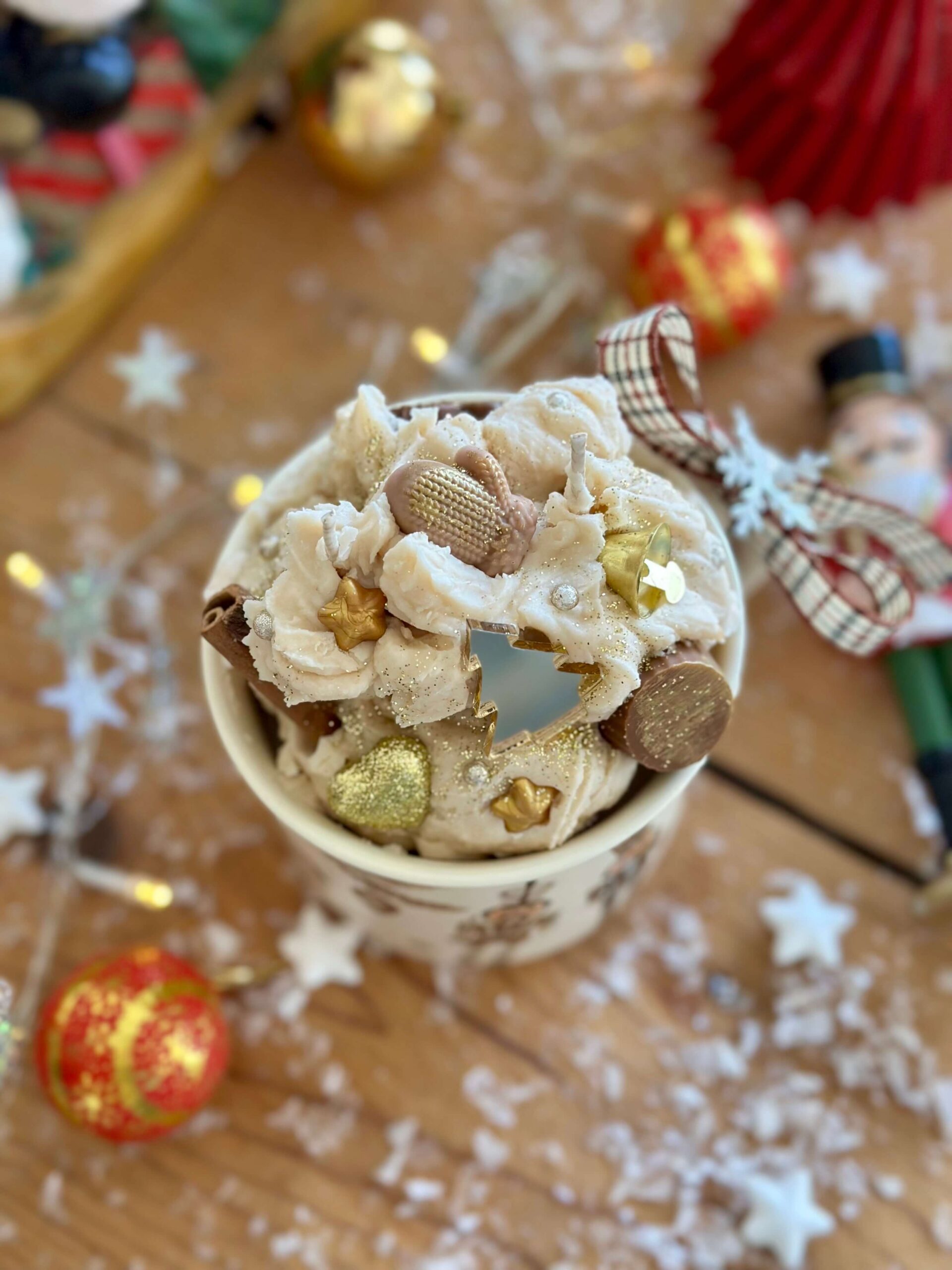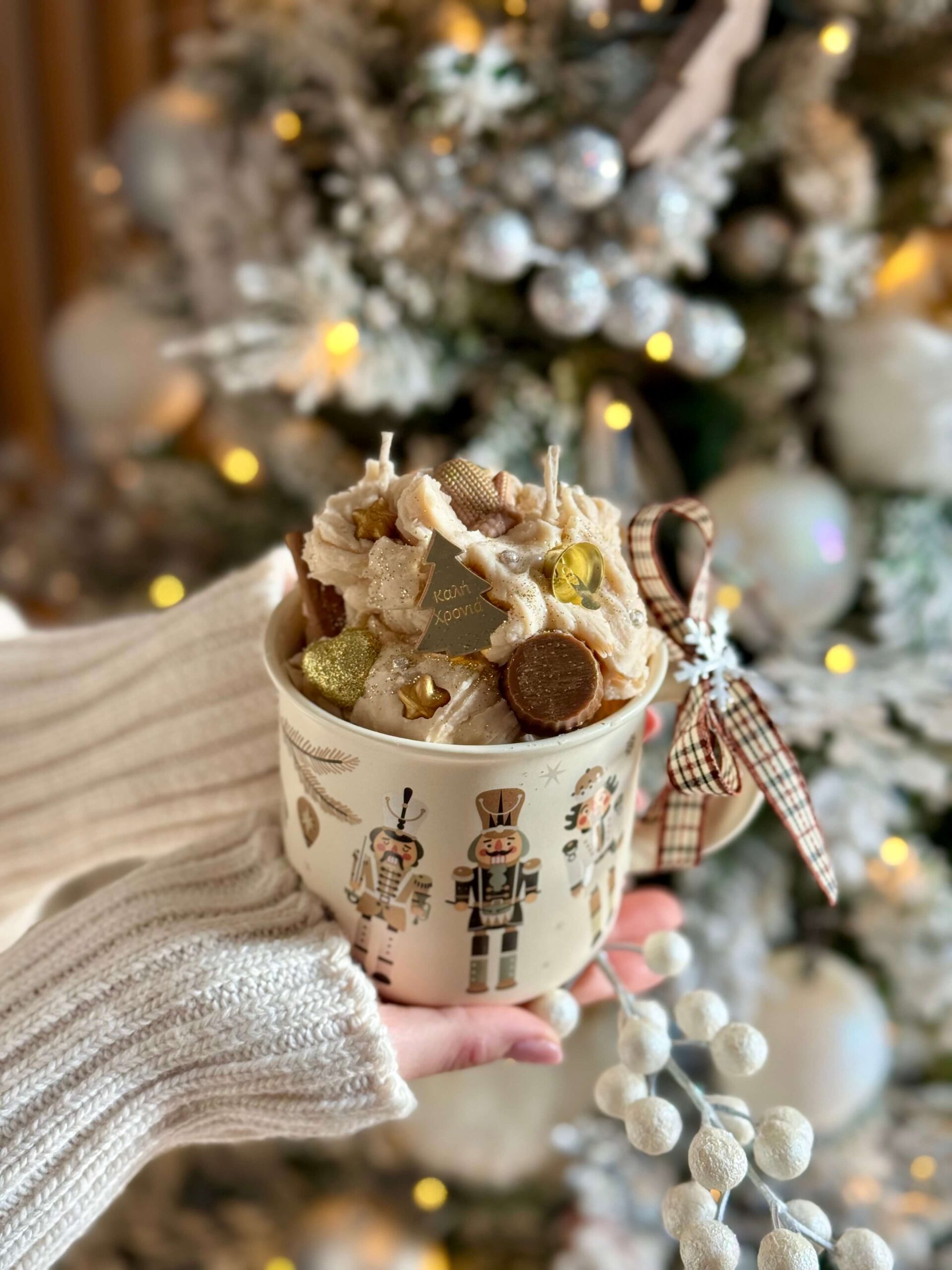 Η πιο κλασική και αγαπημένη φιγούρα των Χριστουγέννων ζωντανεύει μέσα σε αυτή την υπέροχη κούπα! Διακοσμημένη με τους παραμυθένιους καρυοθραύστες και γεμάτη πλούσια, αφράτη “σαντιγί” από κερί, γιορτινά στολίδια και λαμπερές λεπτομέρειες, αποπνέει κομψότητα και νοσταλγία. Το άρωμά της, μια εκλεπτυσμένη ένωση καραμέλας, βανίλιας και σανταλόξυλου, γεμίζει το σπίτι με τη γλυκιά θαλπωρή των γιορτών.