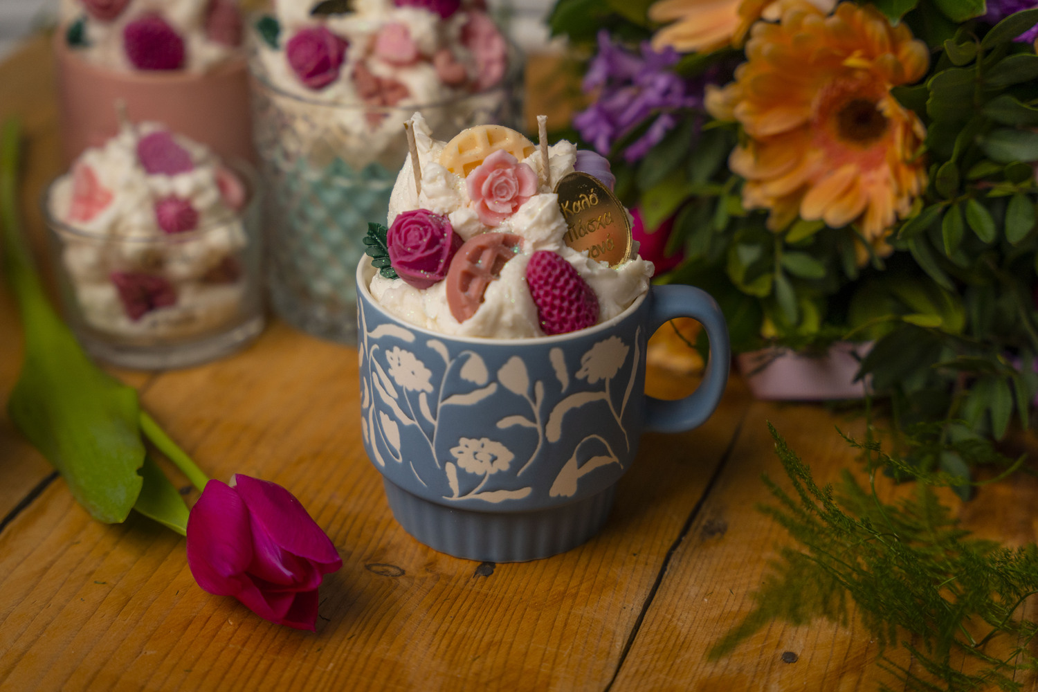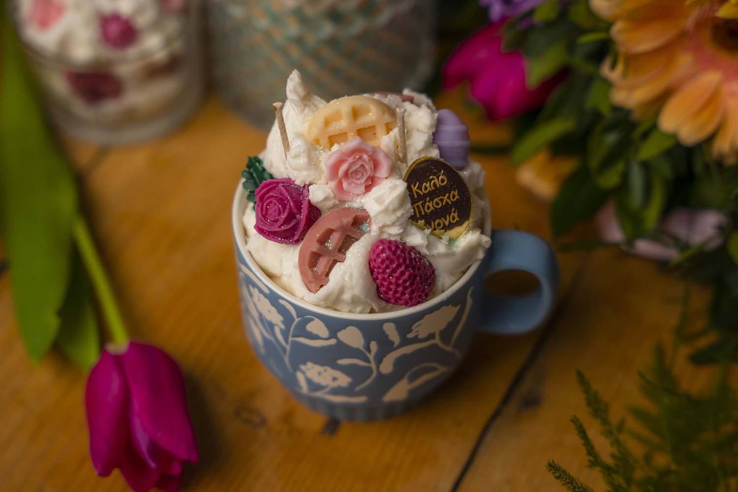 Διακοσμητική κούπα φτιαγμένη από φυτικό κερί υψηλής ποιότητας και επιλεγμένα αρώματα που διαρκούν στον χώρο, δημιουργώντας μια ζεστή και ευχάριστη ατμόσφαιρα. Κάθε κερί συνδυάζει αισθητική και άρωμα, αποτελώντας μια όμορφη πινελιά για τη διακόσμηση του σπιτιού ή του επαγγελματικού σας χώρου.