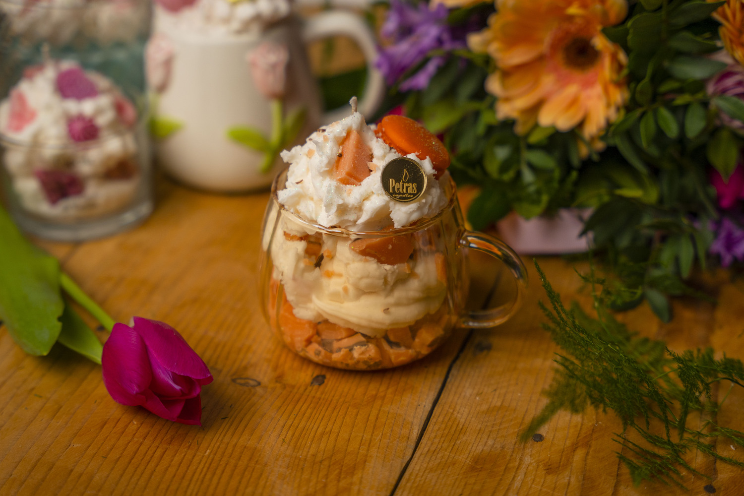 Διακοσμητική κούπα φτιαγμένη από φυτικό κερί υψηλής ποιότητας και επιλεγμένα αρώματα που διαρκούν στον χώρο, δημιουργώντας μια ζεστή και ευχάριστη ατμόσφαιρα. Κάθε κερί συνδυάζει αισθητική και άρωμα, αποτελώντας μια όμορφη πινελιά για τη διακόσμηση του σπιτιού ή του επαγγελματικού σας χώρου.